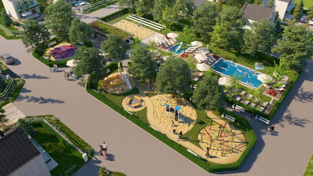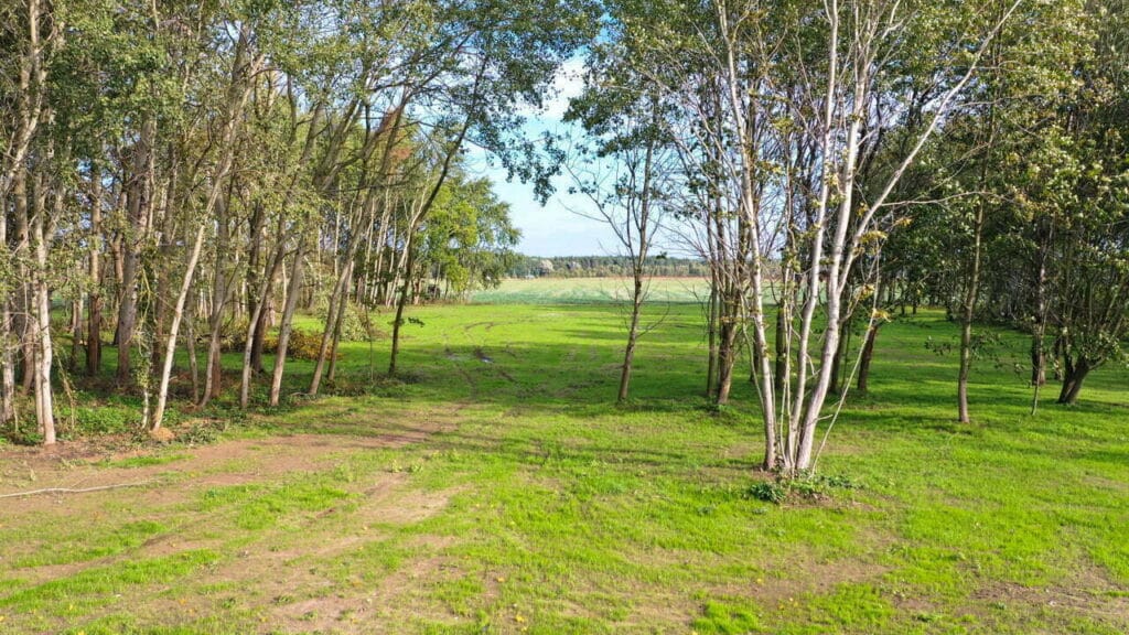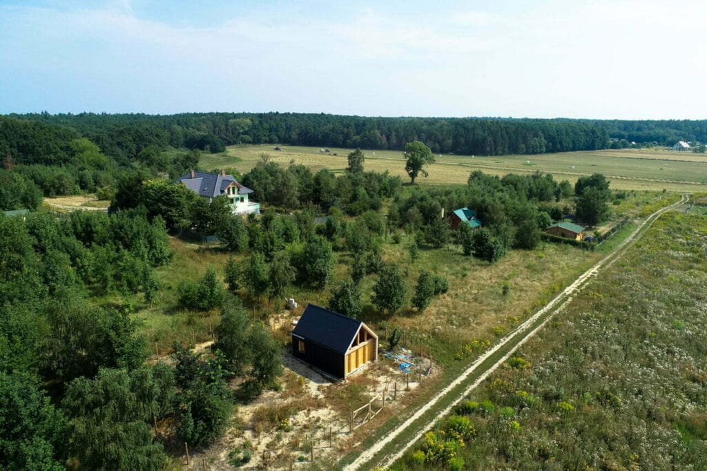 W praktyce liczy się również wygoda na miejscu. Bezpośrednio do terenu prowadzi utwardzony dojazd, a teren ma być w przyszłości ogrodzony. Media są w trakcie realizacji, a dodatkowo przewidziano miejsce pod strefę rekreacji, co wspiera „resortowy” charakter wypoczynku.