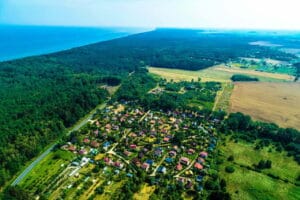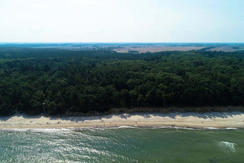 Osada Dziwnówek to miejsce stworzone dla osób, które chcą mieć nadmorski klimat na co dzień, ale bez zgiełku typowego kurortu. Okolica wyróżnia się rzadko spotykanym sąsiedztwem sosnowo-bukowych lasów, a do plaży jest 2 500 m, co oznacza zaledwie 7 minut jazdy rowerem. To świetny układ na spontaniczne wyjścia nad morze, a jednocześnie na spokojny wypoczynek w zielonym otoczeniu.
